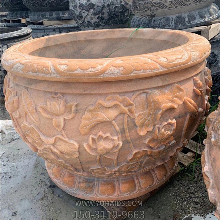 室內(nèi)庭院大理石仿古石雕魚缸擺件雕塑 室內(nèi)庭院大理石仿古石雕魚缸擺件雕塑