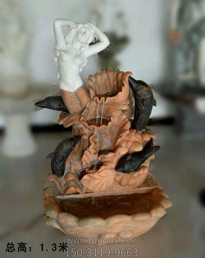 西方文化雕塑 天使晚霞紅石雕庭院流水小天使噴泉雕塑.詳細說明