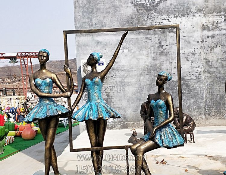景區(qū)廣場(chǎng)跳芭蕾小品人物玻璃鋼仿銅雕塑.圖片展示