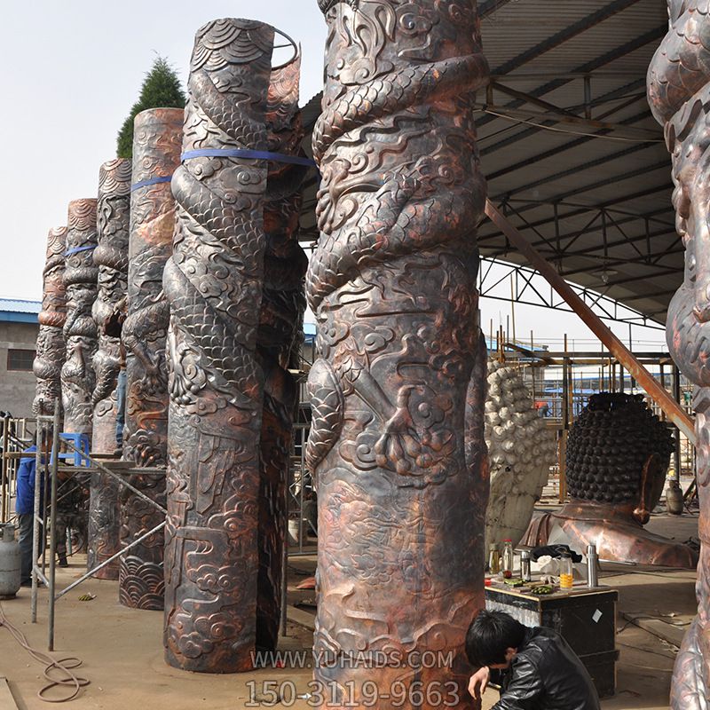 酒店廣場裝飾紫銅浮雕中式鑄銅龍柱雕塑.圖片展示