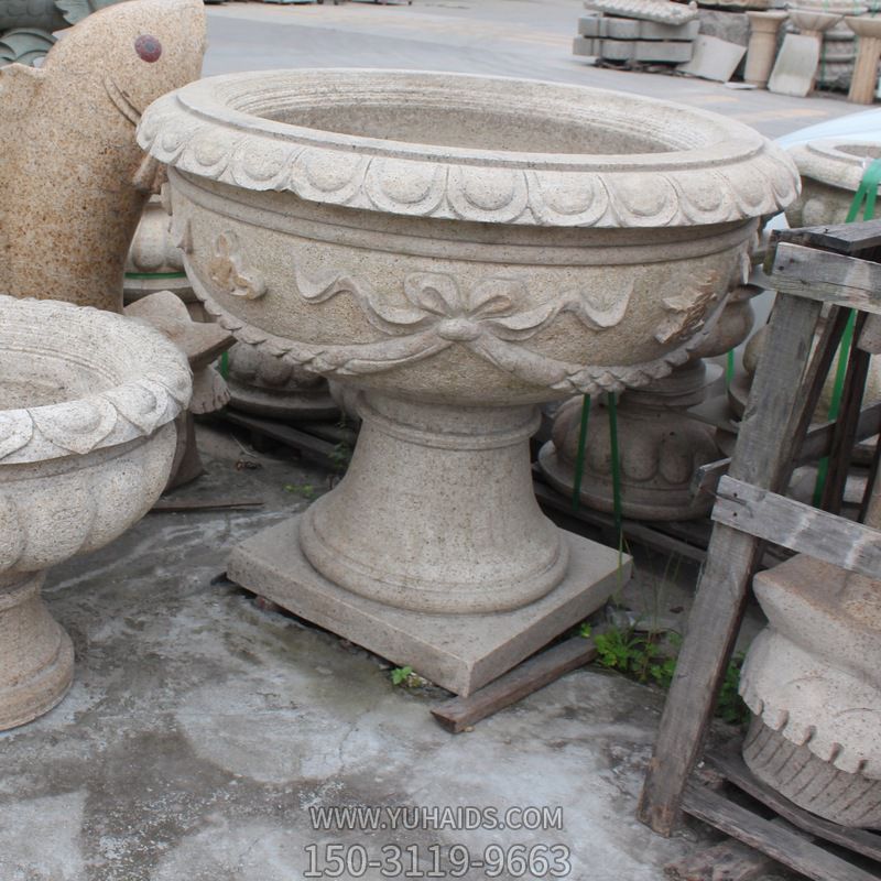 杯型公園大理石石雕花盆雕塑.詳細(xì)說明