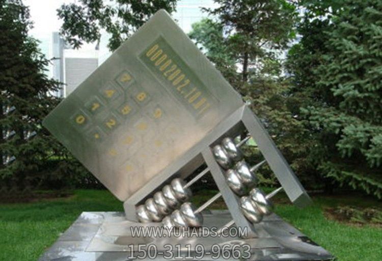 公園里擺放的斜著的不銹鋼創(chuàng)意算盤雕塑.詳細說明