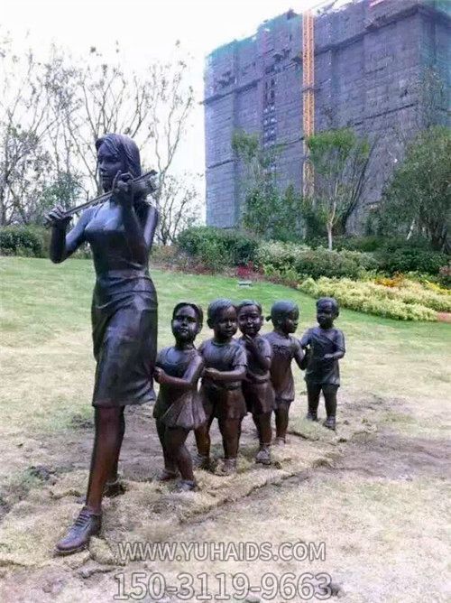 小區(qū)戶外玻璃鋼純銅老師拉小提琴玻璃鋼仿銅雕塑.詳細說明