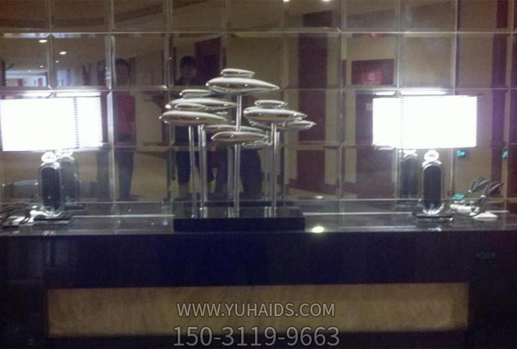 售樓部創(chuàng)意景觀不銹鋼鏡面抽象小魚雕塑.圖片展示