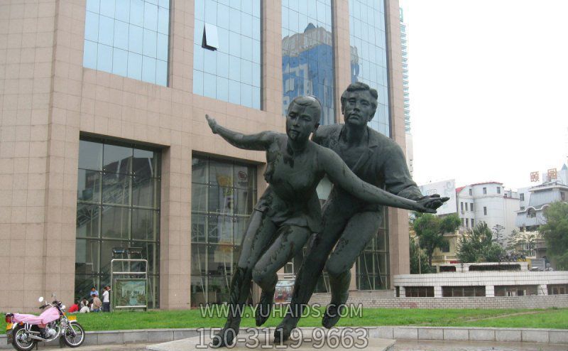 城市花園廣場雙人滑冰人物玻璃鋼仿銅雕雕塑.圖片展示
