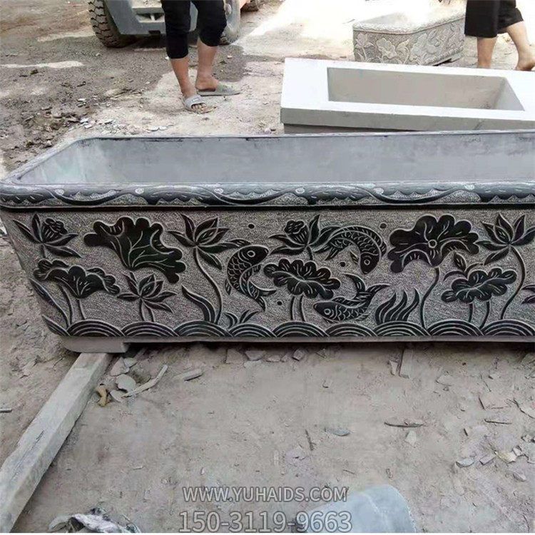 青石石雕戶外浮雕景觀長方形魚缸雕塑.詳細(xì)說明