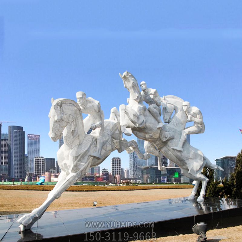 城市廣場擺放騎馬比賽人物運動主題玻璃鋼雕塑 城市廣場擺放騎馬比賽人物運動主題玻璃鋼雕塑