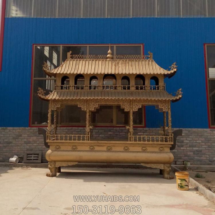 寺廟大型多層銅噴漆祈福香爐擺件雕塑.圖片展示