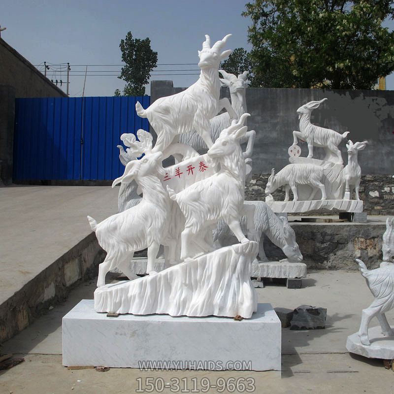 戶外公園十二生肖羊漢白玉石雕三羊開泰雕塑 戶外公園十二生肖羊漢白玉石雕三羊開泰雕塑