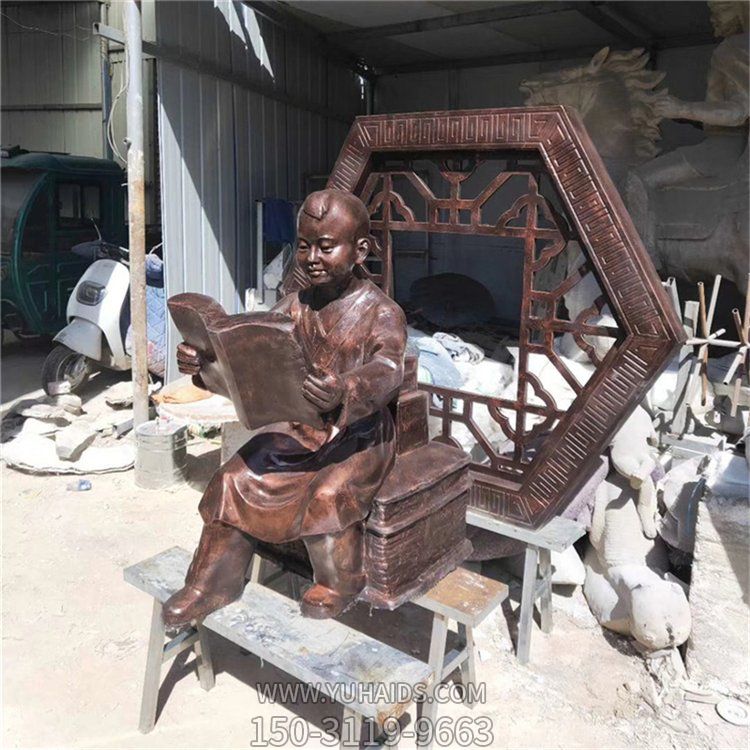 | 產品標題 | 看書的玻璃鋼仿銅兒童雕塑 |