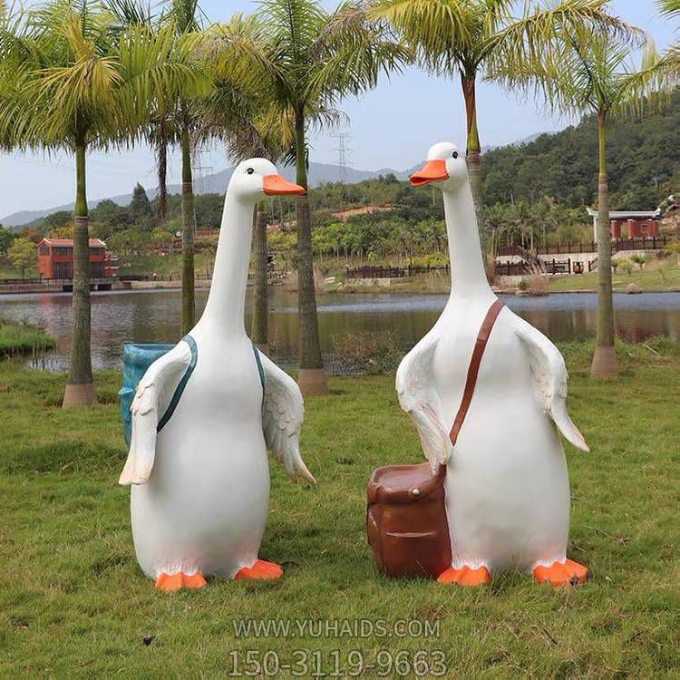 花園庭院裝飾擺件玻璃鋼彩繪卡通 仿真動(dòng)物鵝雕塑.圖片展示