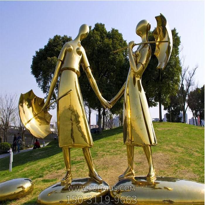 | 產(chǎn)品標(biāo)題 | 不銹鋼拋光抽象打傘人物公園景觀小品雕塑 |