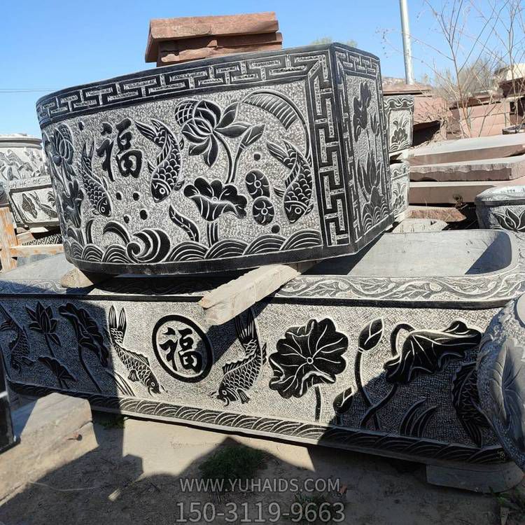 青石石雕庭院別墅小區(qū)魚缸雕塑擺件 青石石雕庭院別墅小區(qū)魚缸雕塑擺件