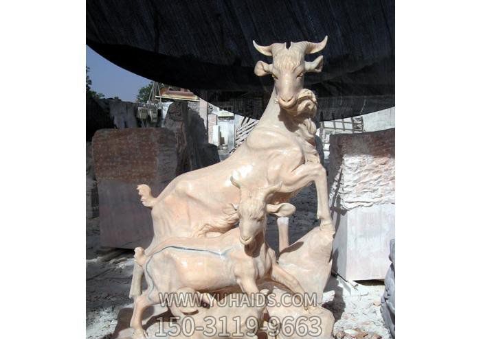公園晚霞紅石雕母子羊戶外景區(qū)景觀裝飾品大型仿真動物山羊三羊開泰雕塑.詳細說明