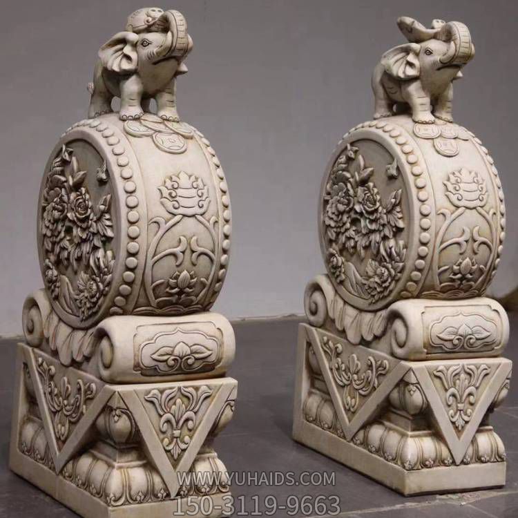 大理石浮雕招財(cái)小象抱鼓石庭院門口擺件雕塑.詳細(xì)說明