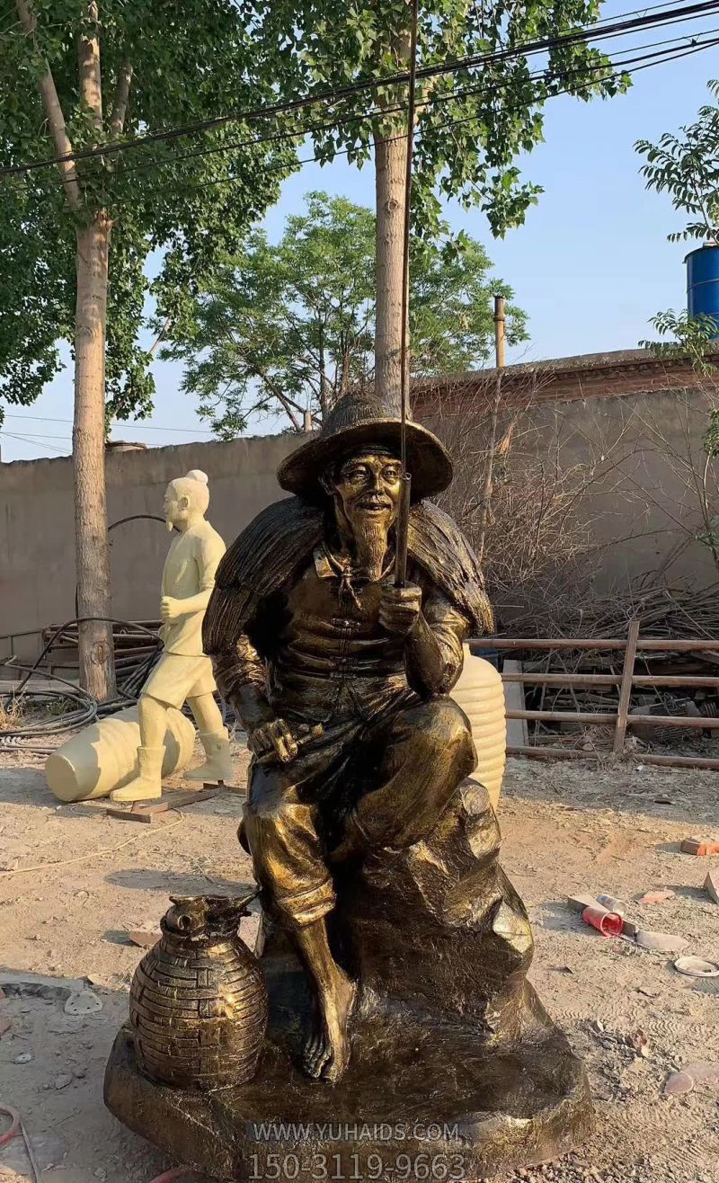 景區(qū)海邊公園漁翁釣魚玻璃鋼仿銅雕塑
