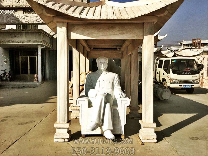 景區(qū)漢白玉石雕涼亭中休息的毛澤東雕塑.參數(shù)說明