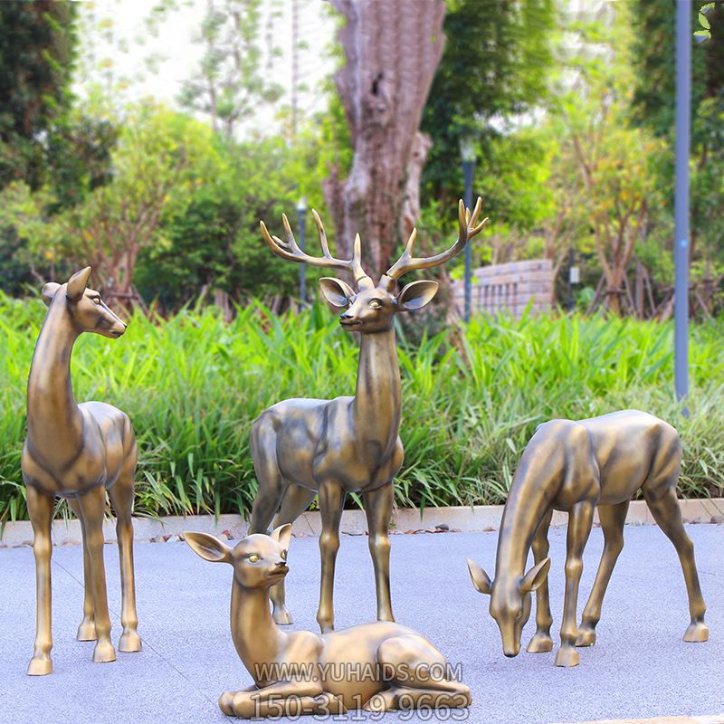 公園玻璃鋼彩繪創(chuàng)意玻璃鋼仿銅四只鹿雕塑.圖片展示