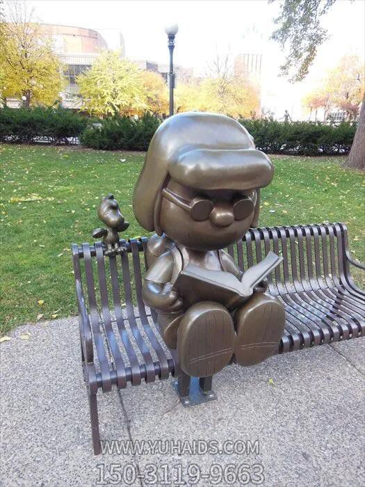 公園創(chuàng)意玻璃鋼仿銅長椅上看書的兒童景觀雕塑.詳細(xì)說明