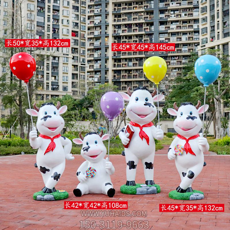 商場一群拿球的玻璃鋼牛雕塑 商場一群拿球的玻璃鋼牛雕塑