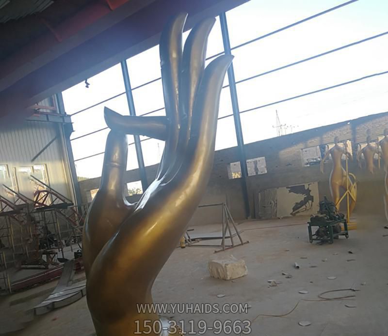 別墅庭院景區(qū)鍍金玻璃鋼手型雕塑.詳細說明