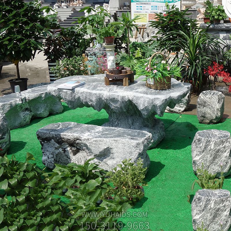 園林景區(qū)擺放異形大理石雕桌凳雕塑.圖片展示