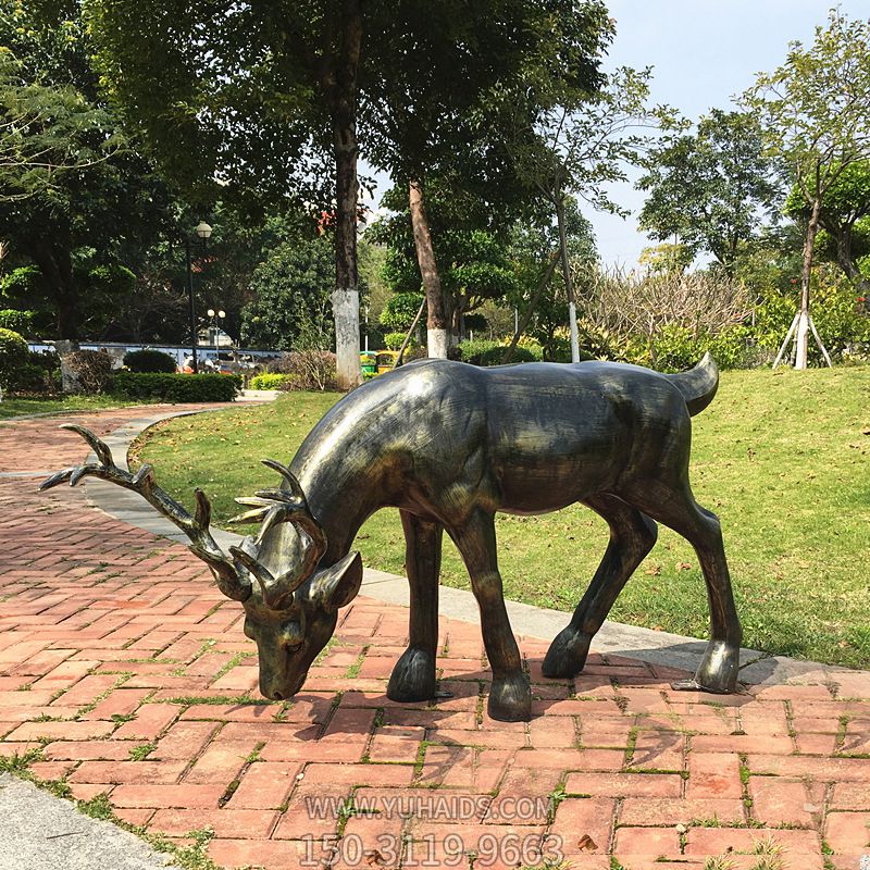 公園街道銅雕洗頭覓食的鹿雕塑 公園街道銅雕洗頭覓食的鹿雕塑