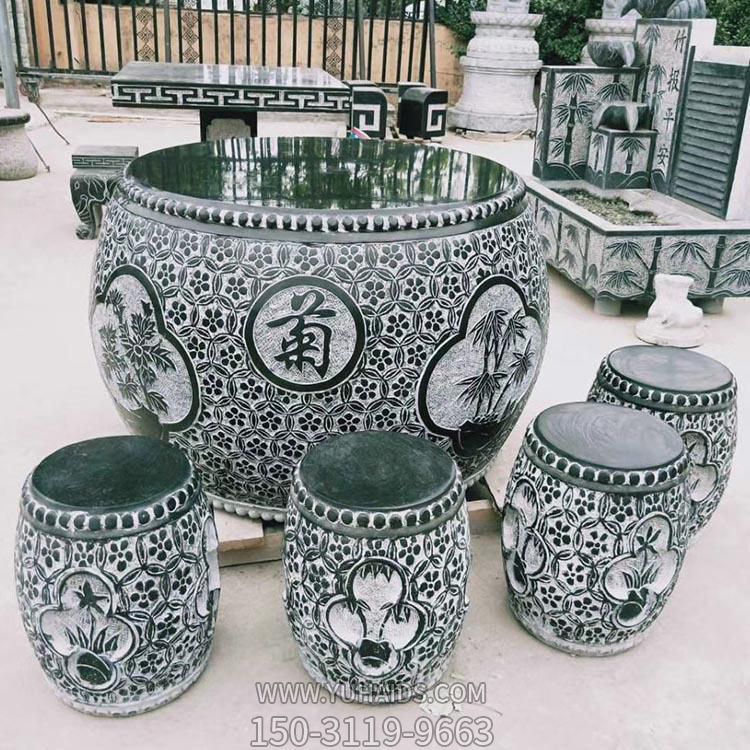 浮雕花紋戶(hù)外庭院園林別墅擺件休息休閑石桌石凳雕塑.圖片展示