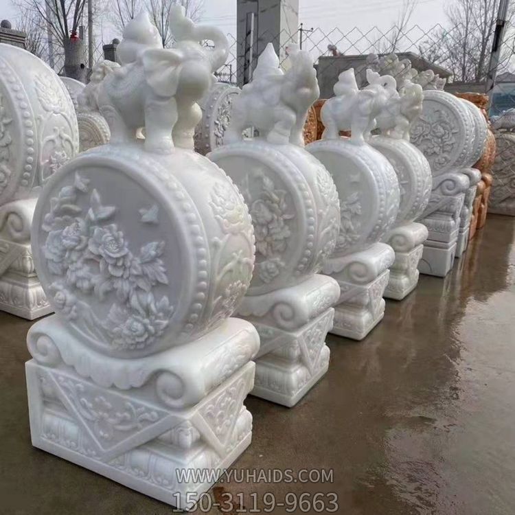 漢白玉浮雕門口門墩一對抱鼓石雕塑 漢白玉浮雕門口門墩一對抱鼓石雕塑