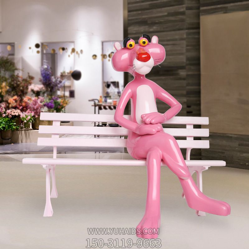 公園彩繪玻璃鋼可愛坐著的粉紅豹雕塑 公園彩繪玻璃鋼可愛坐著的粉紅豹雕塑