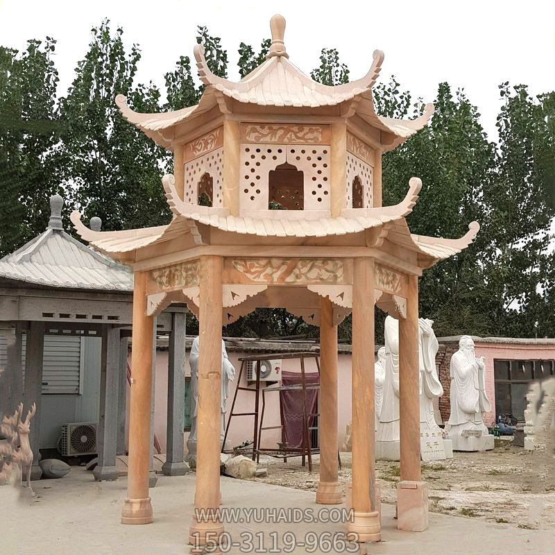 寺院戶外擺放晚霞紅復式頂休息涼亭雕塑 寺院戶外擺放晚霞紅復式頂休息涼亭雕塑