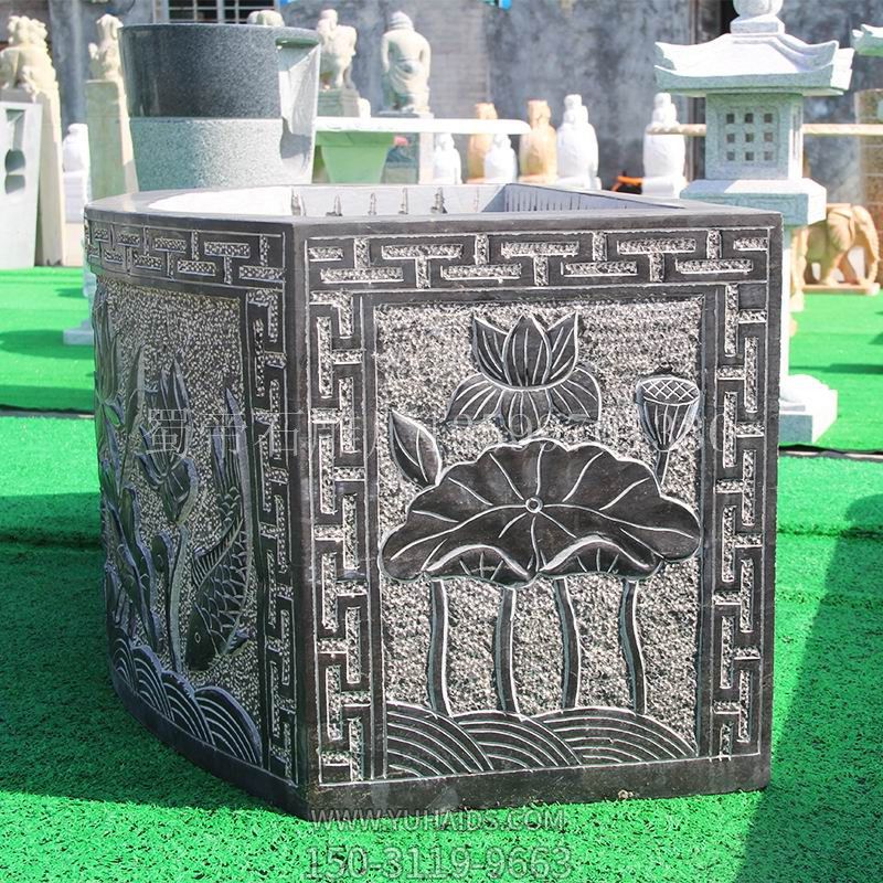 雕魚缸花盆青石仿古室內養(yǎng)魚池庭院裝飾水缸老石槽雕塑.圖片展示