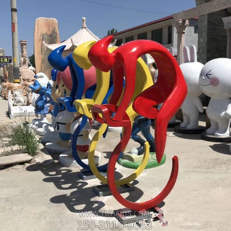 | 產(chǎn)品標題 | 校園廣場不銹鋼彩繪抽象騎自行車的人物雕塑 |