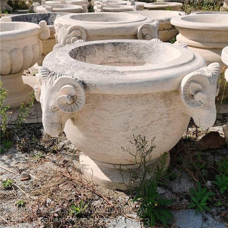 天然大理石雕刻羊頭水缸別墅擺放養(yǎng)魚缸雕塑.圖片展示