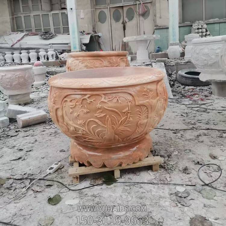 晚霞紅石雕浮雕庭院戶外缸雕塑 晚霞紅石雕浮雕庭院戶外缸雕塑