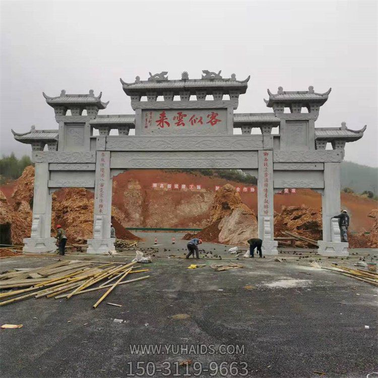 新農(nóng)村村口擺放青石雕刻門樓牌坊雕塑.圖片展示