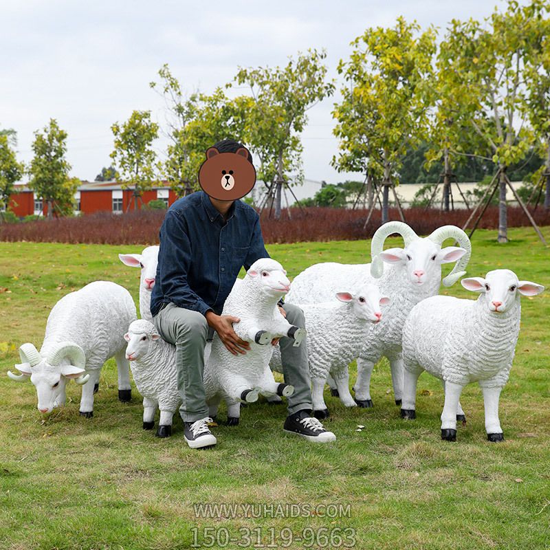 草坪上一群形態(tài)各異的玻璃鋼綿羊雕塑.參數(shù)說明