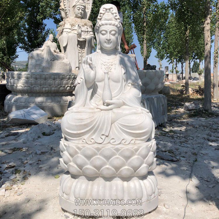 坐蓮觀音漢白玉石雕塑像 坐蓮觀音漢白玉石雕塑像