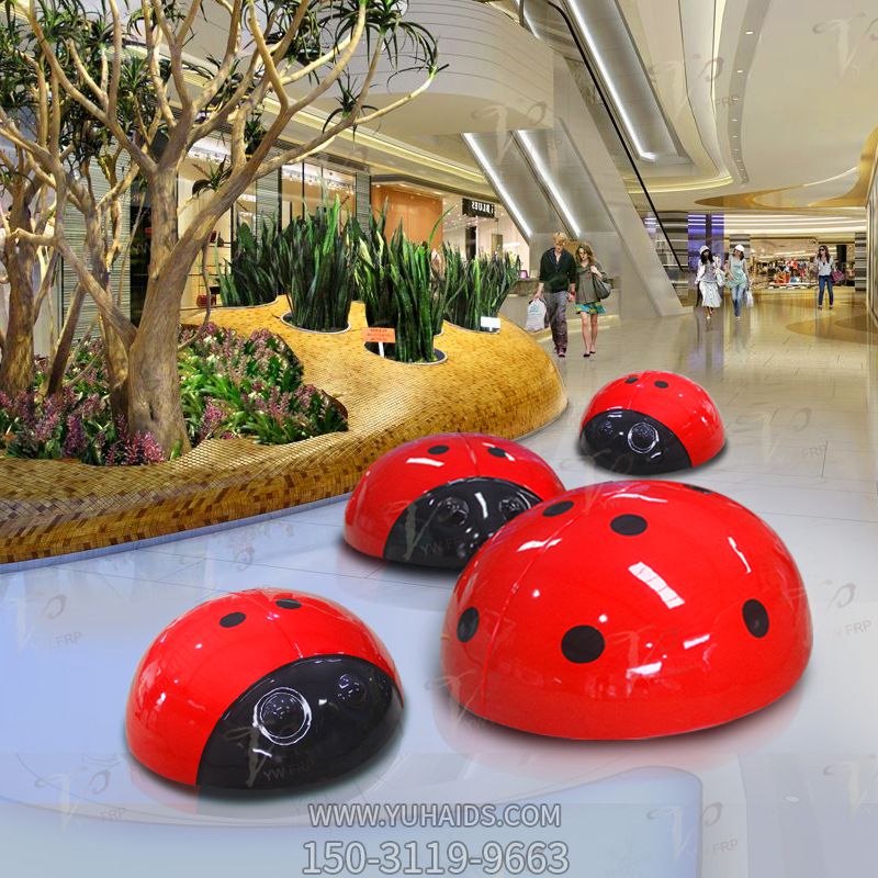 商場里擺放的一大三小的玻璃鋼彩繪瓢蟲雕塑.詳細(xì)說明