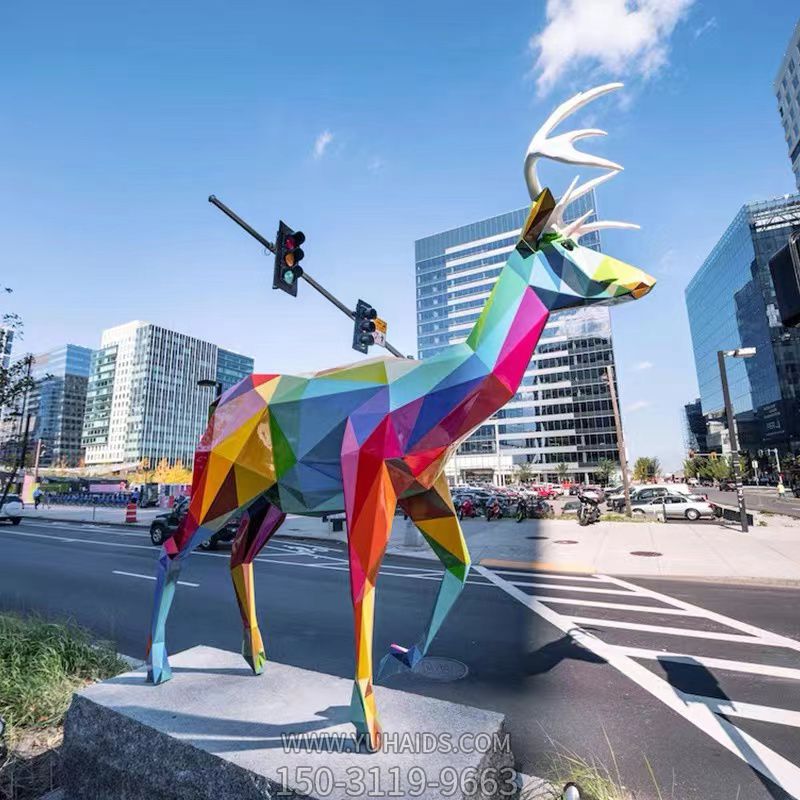 城市街道玻璃鋼彩繪幾何梅花鹿雕塑 城市街道玻璃鋼彩繪幾何梅花鹿雕塑