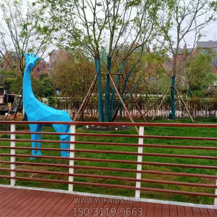 藍(lán)色玻璃鋼塊面長(zhǎng)頸鹿雕塑.圖片展示