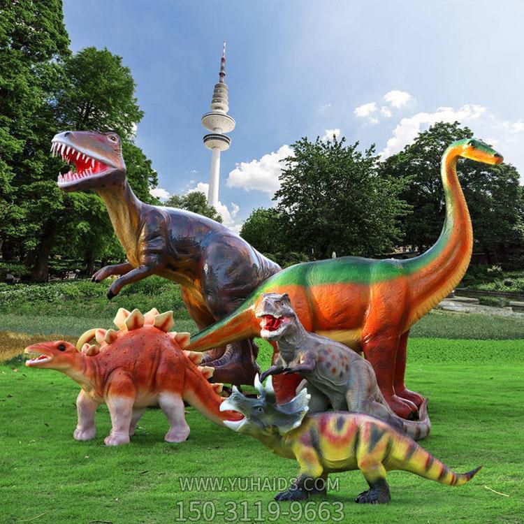 玻璃鋼卡通園林景觀游樂場(chǎng)恐龍擺件雕塑.圖片展示