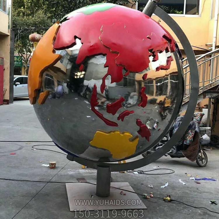 不銹鋼鏡面彩繪創(chuàng)意地球儀雕塑.詳細(xì)說(shuō)明