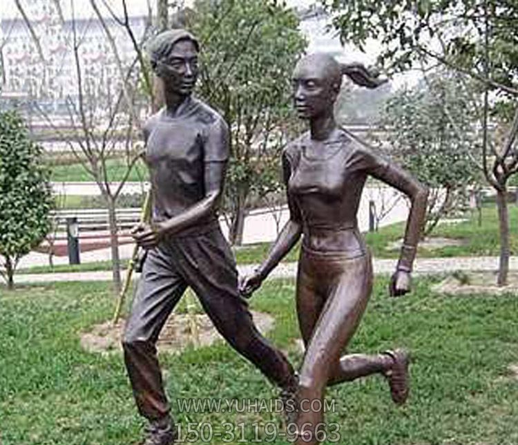 公園跑步男女人物玻璃鋼仿銅雕塑.圖片展示
