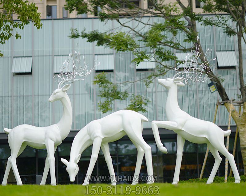 小區(qū)創(chuàng)意玻璃鋼三只白色鹿雕塑 小區(qū)創(chuàng)意玻璃鋼三只白色鹿雕塑