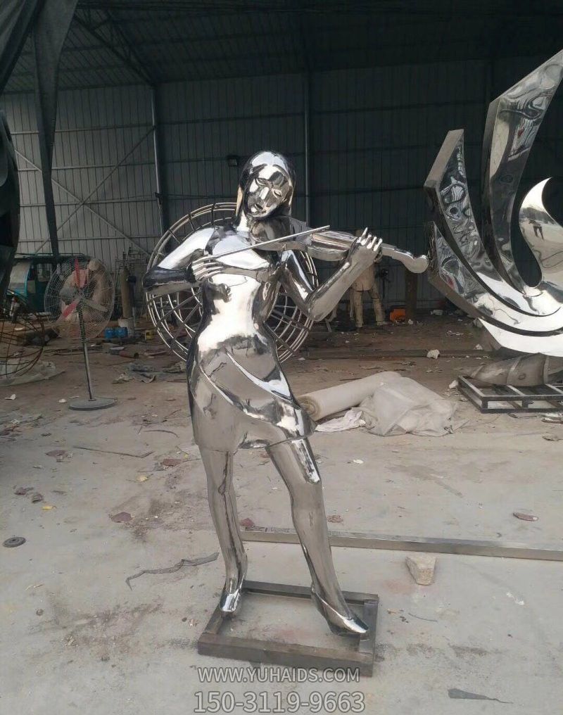 景區(qū)園林一位拉小提琴的不銹鋼鏡面琴雕塑 景區(qū)園林一位拉小提琴的不銹鋼鏡面琴雕塑