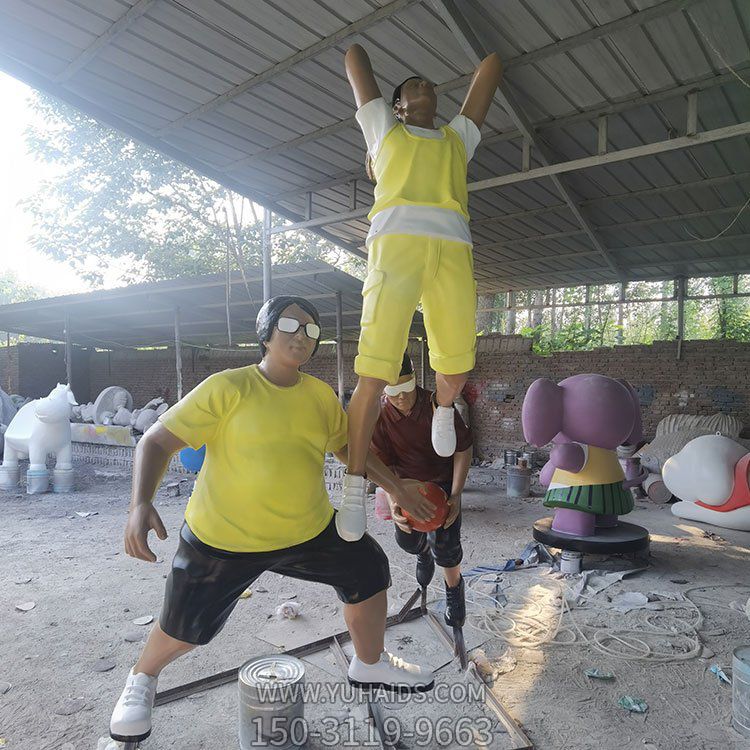 | 產(chǎn)品標題 | 校園廣場玻璃鋼卡通人物打籃球景觀雕塑 |