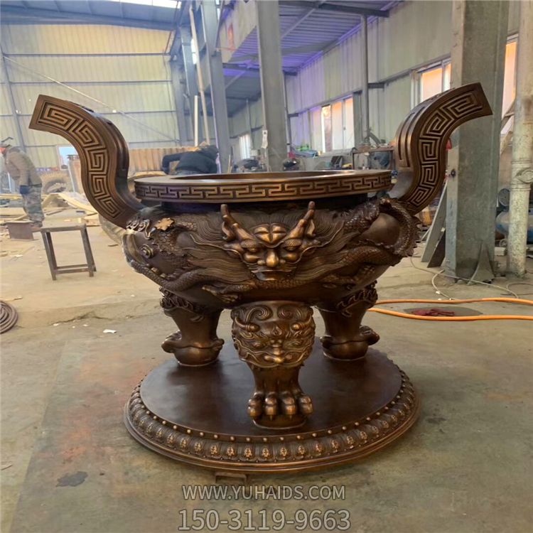 景區(qū)廣場擺放黃銅浮雕龍圓形平口香爐雕塑 景區(qū)廣場擺放黃銅浮雕龍圓形平口香爐雕塑