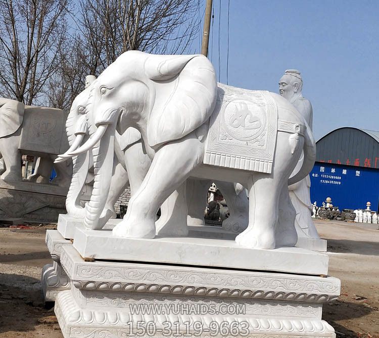 -漢白玉石雕法院酒店門口大象雕塑 -漢白玉石雕法院酒店門口大象雕塑