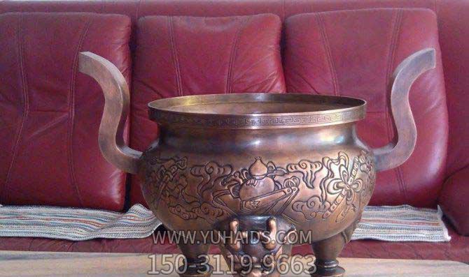 佛堂室內(nèi)擺放圓形平口上香紅銅香爐雕塑.詳細(xì)說(shuō)明